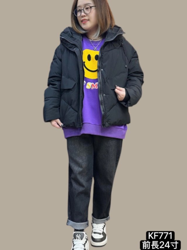 KF771 高質純色撞黑灰棉有帽JK $199 黑、桃粉、米白、黃 前長24寸、後長27寸、闊50寸