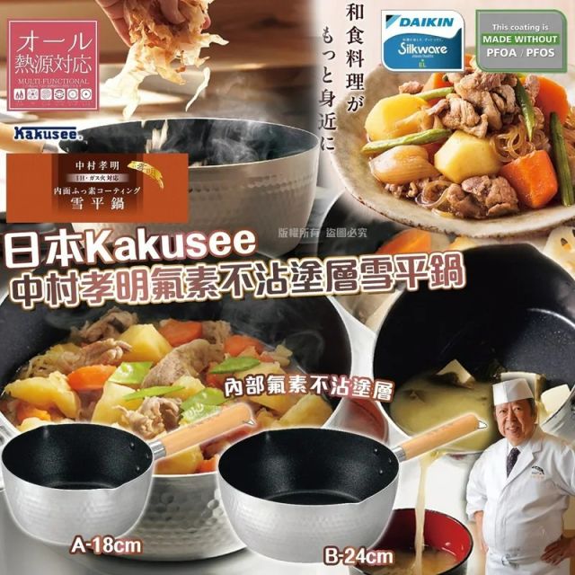 📢預訂團購---L017✨日本Kakusee 中村孝明氟素不沾塗層雪平鍋✨(約1月尾到貨)-$79/$109