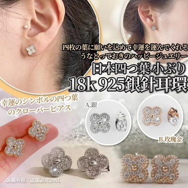 📢預訂團購---M011✨日本四葉草 18k 925 銀針耳環✨(約2月中到貨)-$48