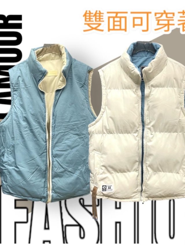 KF769 撞色雙面夾棉背心JK 長28寸、闊48寸 啡黑、啡綠、藍白、$229