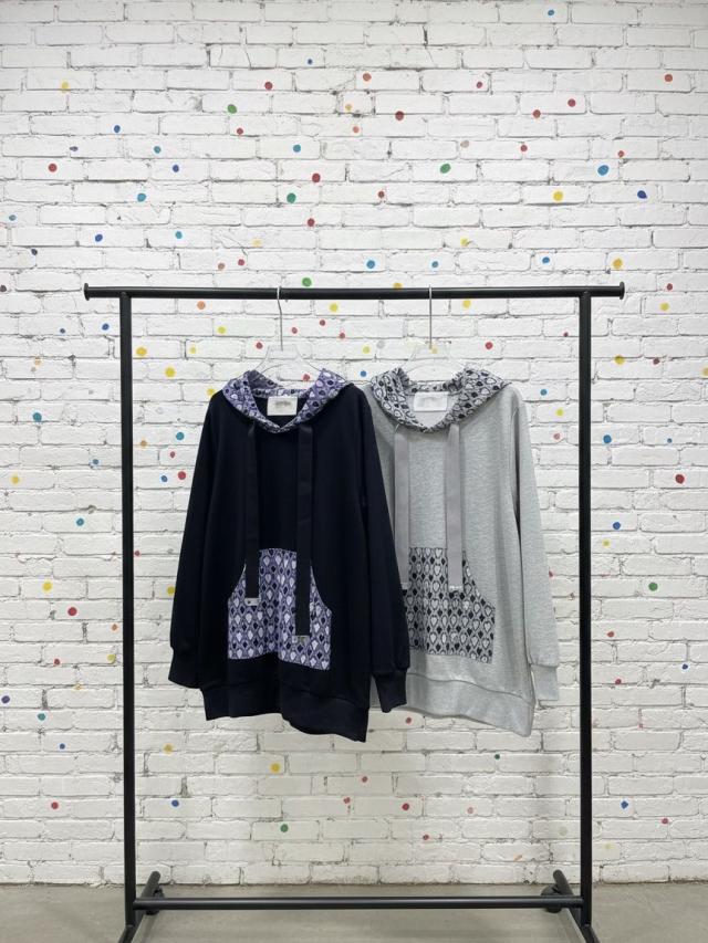 KF762 愛心珍珠叮噹袋有帽TOP $179 黑 、灰 長27寸、闊54寸