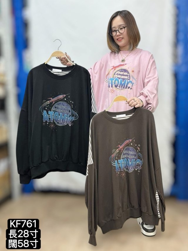 KF761 前面熨印背面橫間TOP $169 長28寸、闊58寸 黑、 粉、 啡、