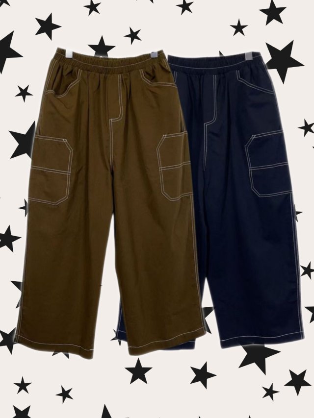KF768 全橡筋腰明車線兩側方袋褲 $169 腰:26-44吋、 Hip:48吋、 褲長:87cm 黑、啡