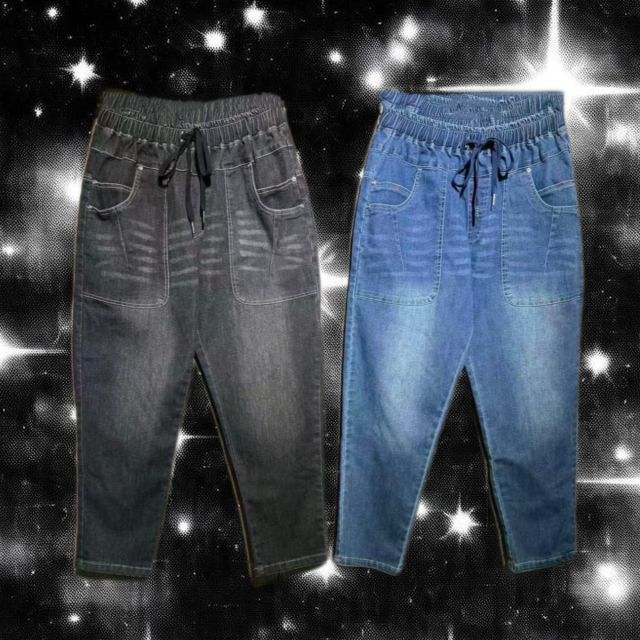 KF766 全橡筋腰洗水貓鬚牛仔褲 黑 藍 $179@1,2條或以上每條減$9 腰:26-48吋、 Hip:46-50吋、 褲長:93cm