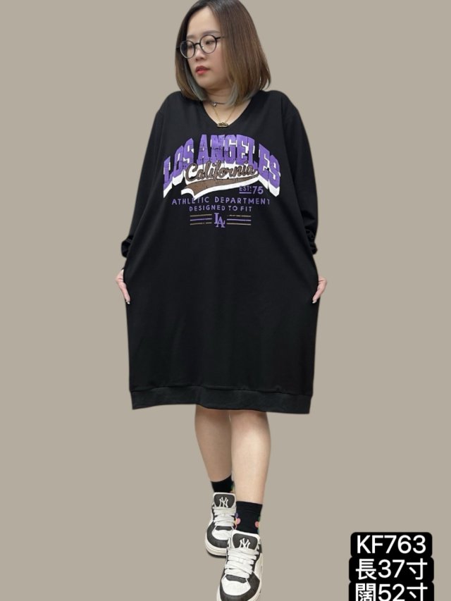 KF763 棉料V領紫啡字OPS 長37寸、闊52寸 $179