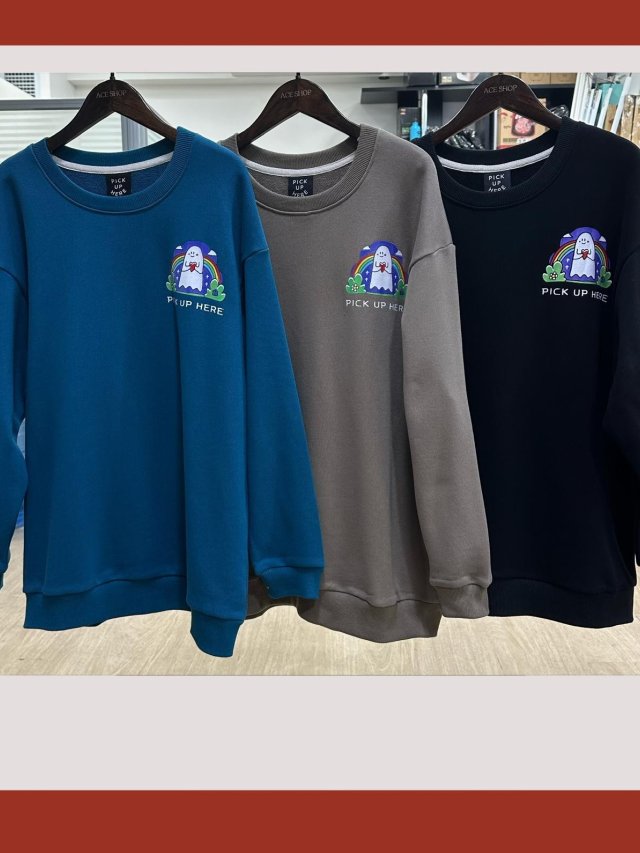PH20 韓國 🇰🇷PICK UP HERE 左胸彩虹Logo衛衣 ❌原價$449❌ ACE直播價$179 黑、啡、綠 Size:F、L