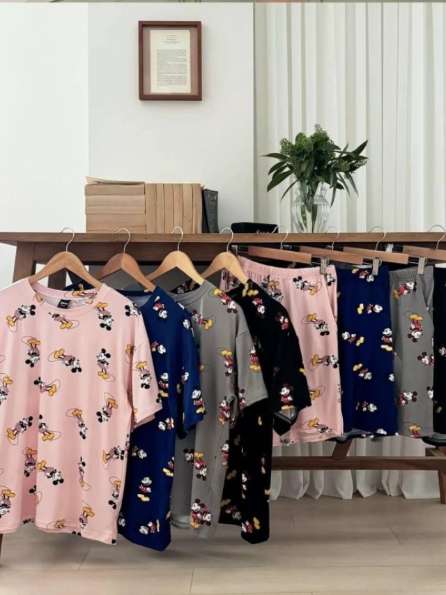 WY64 米奇滿版睡衣套裝 $109 粉、藍、灰、黑 細、大