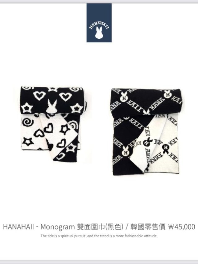 HA75 HANAHAII雙面黑色頸巾 $111 A. 兔仔星星愛心 B. 兔仔文字