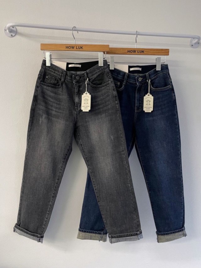 HK109 HOWLUK扣鈕橡筋腰毛底牛仔褲 $199