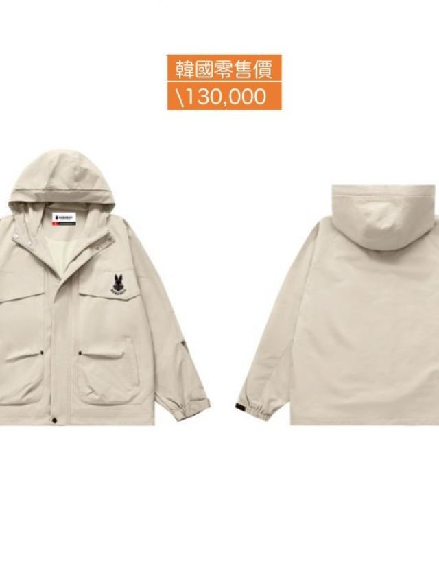 HA33 HANAHAII左胸兔仔手袖印字衝鋒衣 米色、綠色、黑色、啡色、紫色 S、M、L、XL、XXL $549