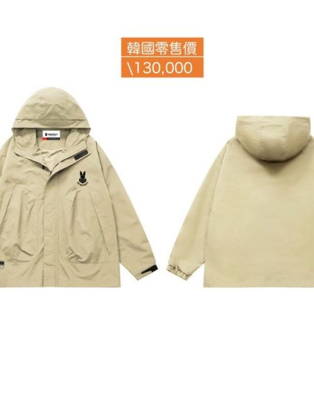 HA32-HANAHAII左胸兔仔前雙袋衝鋒衣-(H系列) 米色、粉色、紫色、灰色、黑色-S、M、L、XL、XXL $549