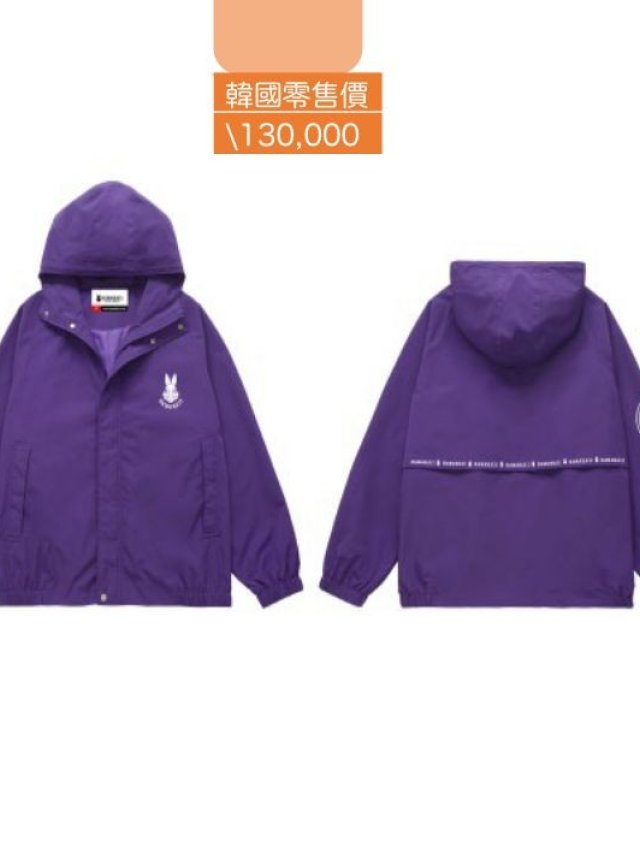 HA43 HANAHAII左胸兔仔後橫字衝鋒衣 紫色、黑色、綠色 S、M、L、XL、XXL $699