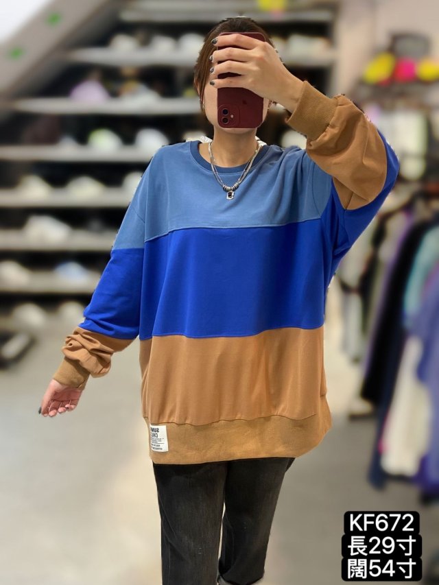 KF672 撞色橫間Top 長29寸、闊54寸 $149 藍、紫、綠