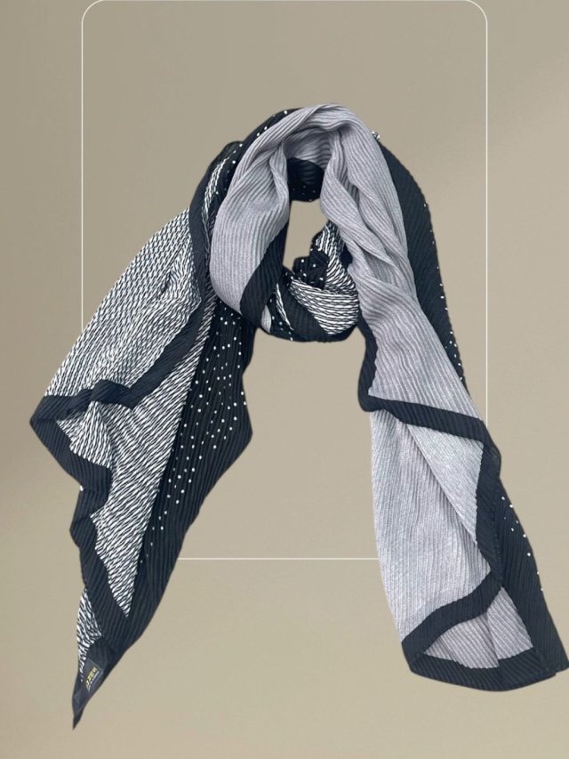 AC258 薄款波點拼條紋Scarf $79 黑、藍