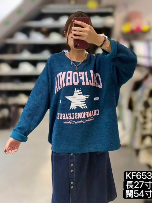 KF653 薄料針織星星文字TOP 長27寸、闊54寸 $149 黑、藍