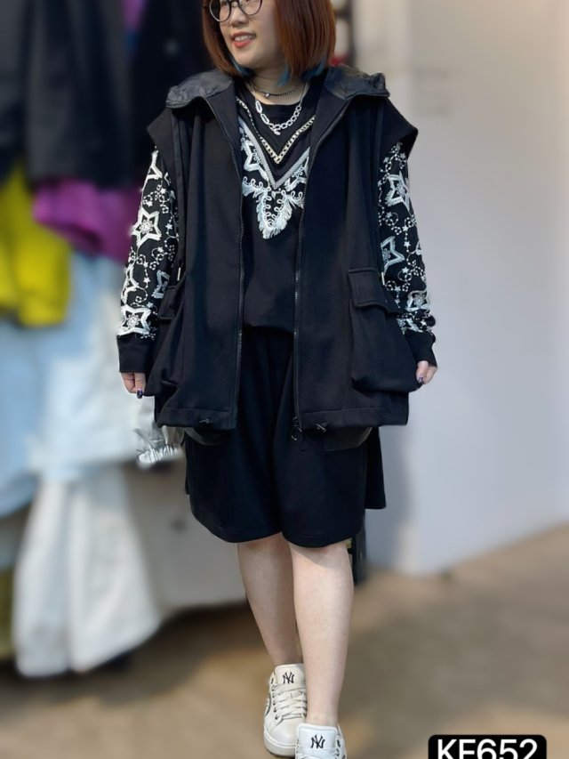 KF652 棉料雙袋有帽背心JK 長28寸、闊52寸 $199 黑、灰