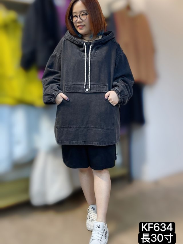 KF634 牛仔有帽叮噹袋TOP 長30寸、闊52寸 $179 黑、藍