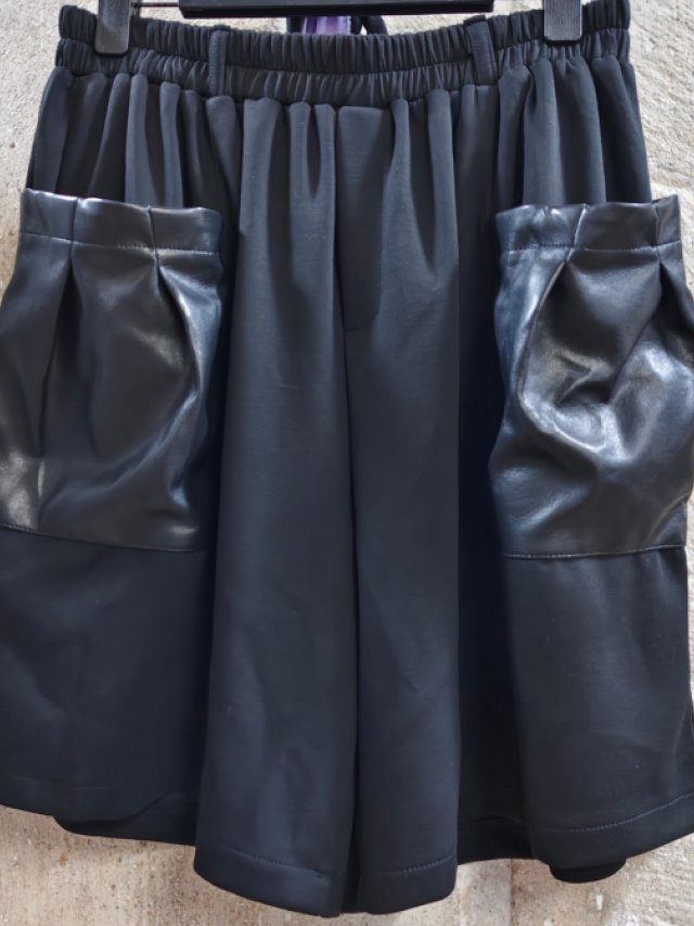 KF644 全橡筋腰太空棉仿皮大方袋短褲 腰26-54寸、HIP46寸-62寸、長50cm $169