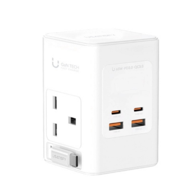 LG760 YH專場 美國USATISFY GaN Master65W氮化鎵全快充7口智控安規伸縮充電線收納迷你拖板 $239