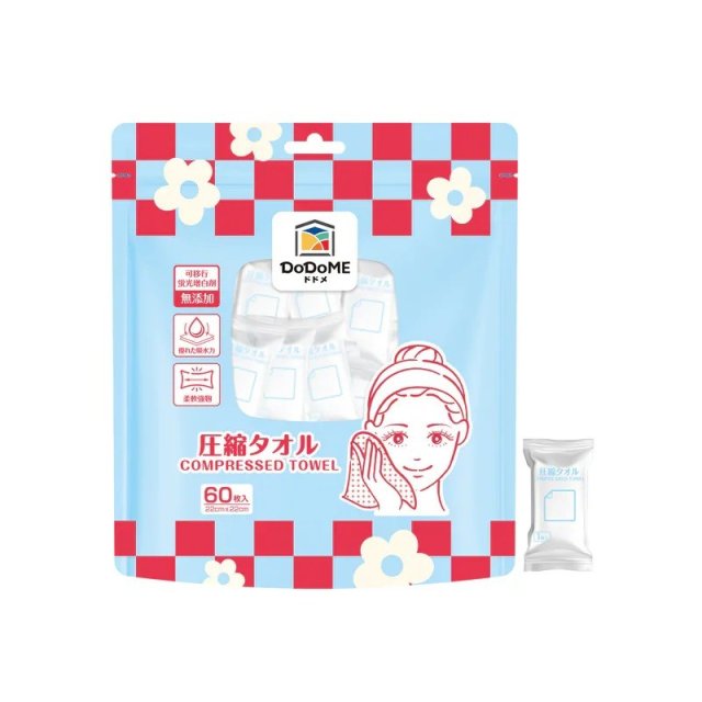 DE92 DoDoME 壓縮毛巾60粒 $30@1, $50@2