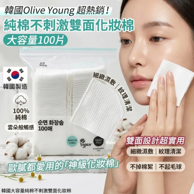 📢預訂團購---P019✨韓國純棉不刺激雙面化妝棉 (1包100片)✨(約6月初到貨)-$39