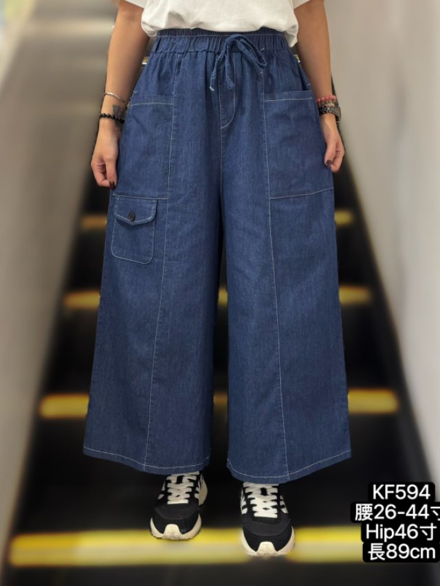 KF648 全橡筋腰索繩明車線束腳牛仔褲 腰26-48寸、HIP48-54寸、長89cm $199