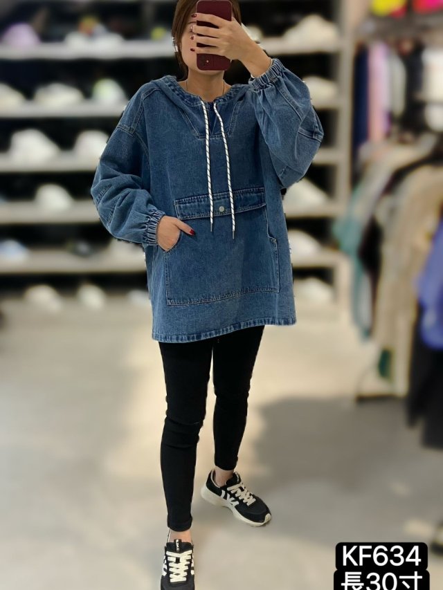 KF634 牛仔有帽叮噹袋TOP 長30寸、闊52寸 $179 黑、藍