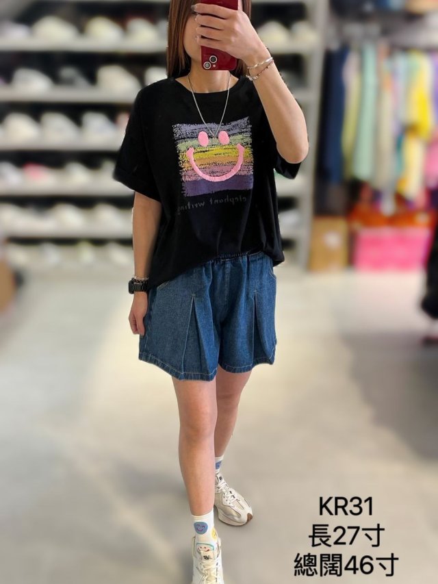 KR31 彩色底拼哈哈笑Top $110 黑 白