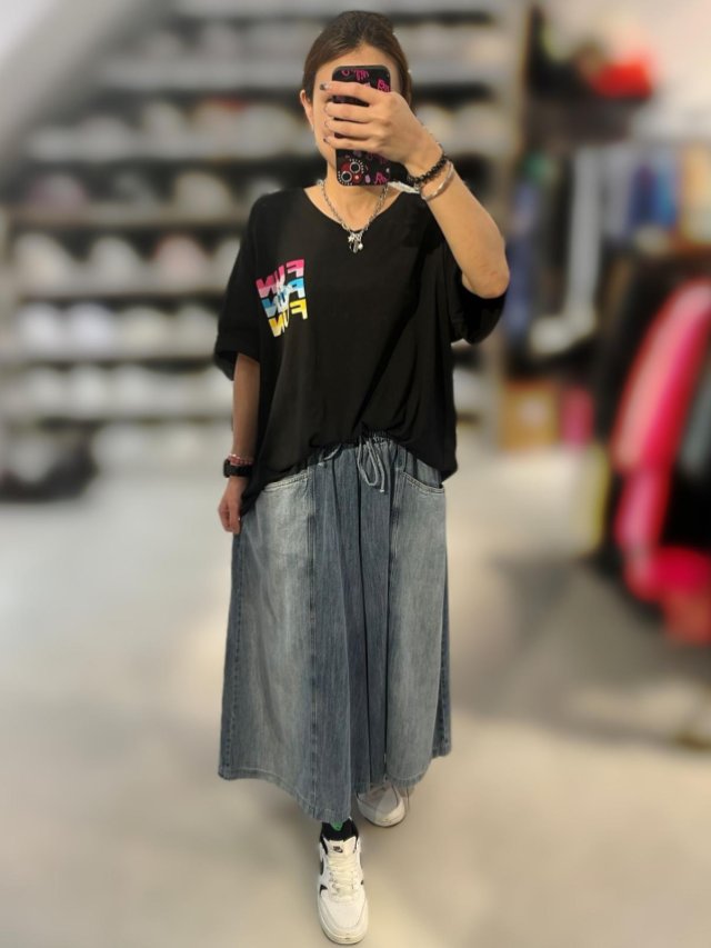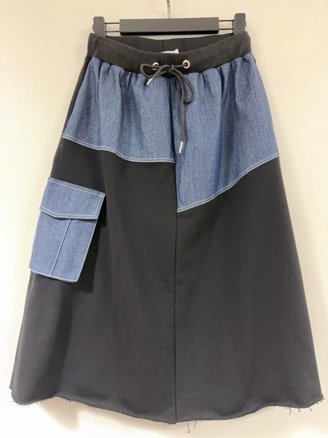 KF819 全橡筋腰棉拼牛仔半裙 腰26-46寸 Hip48-52寸 長68cm $140