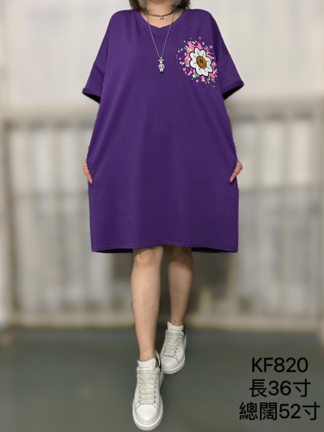 KF820-棉料V領潑墨花朵哈哈笑Ops--$130-長36寸、總闊52寸-黑、紫