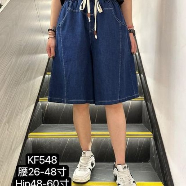 KF548 全橡筋腰明車線牛仔短褲 $130