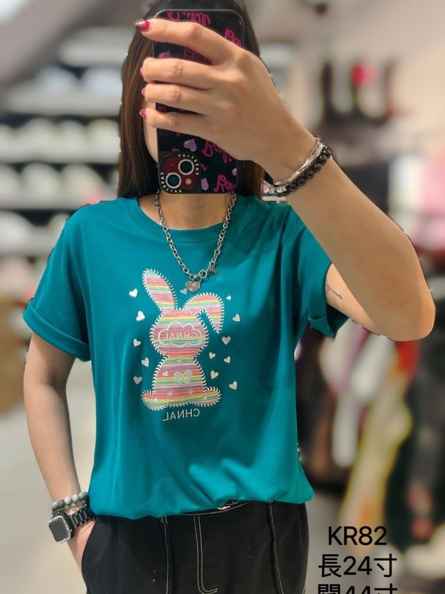 KR82 彩虹兔仔Top $99 黑 綠 白 泥黃