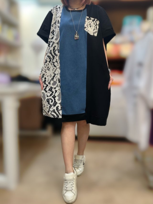 KF501 棉拼牛仔LACE勾花OPS $150