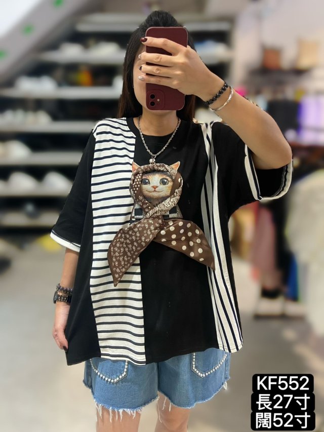 KF582 V領間條拼色車章Top 前長23寸、後長25寸、闊56寸 $179 黑、白、紫