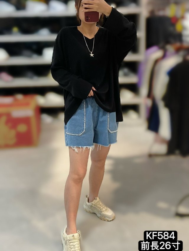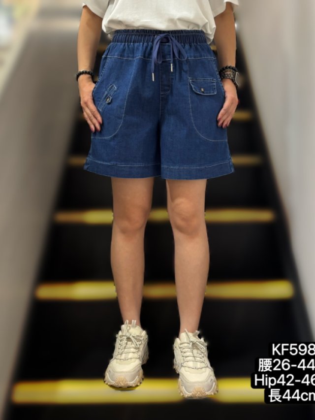 KF598 雙袋不同造型全橡筋牛仔短褲 腰26-44寸、HIP42-46寸、長44cm $159