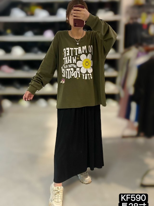 KF590 棉料字母太陽花Top 長28寸、闊56寸 $149 綠、黑、灰