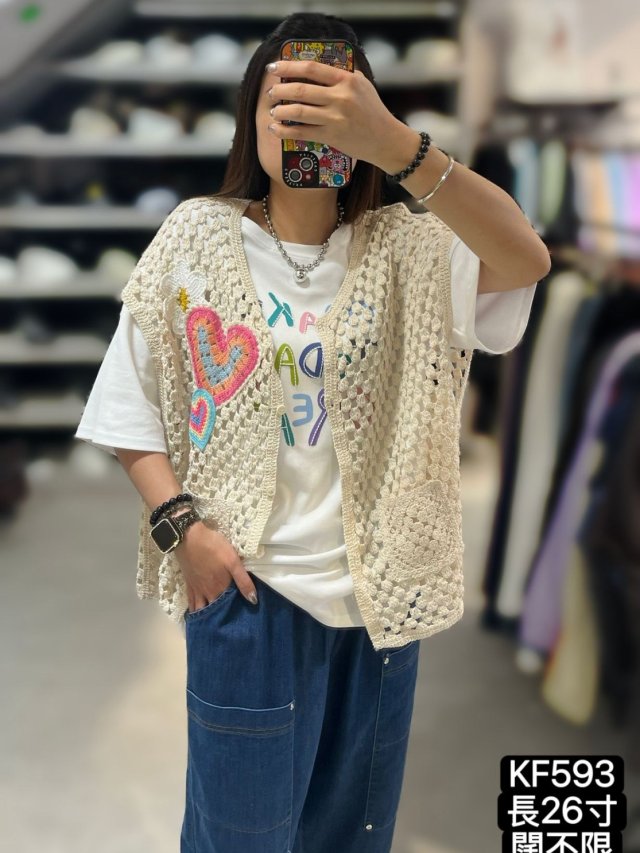 KF593 全勾花彩色背心 長26寸 闊無限 $179