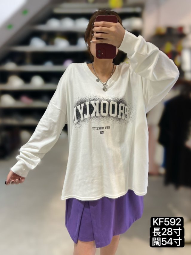 KF602 針織印字長袖TOP 長27寸、闊52寸 $159 白、杏、黑