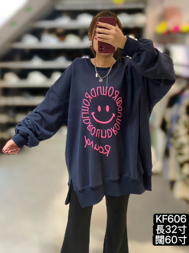 KF606 桃紅色文字哈哈笑衛衣 長32寸、闊60寸 $169