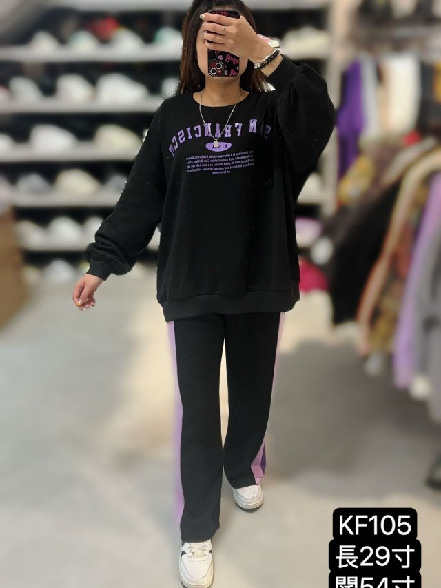 KF105 淨色拼英文文字Top $159 粉 紫 灰 黑
