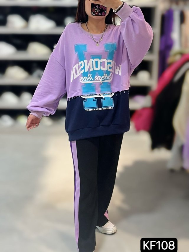 KF108 上下撞色文字Top $139 粉 紫