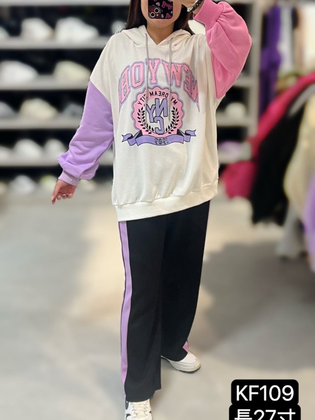 KF115 鴛鴦拼色花花帶有帽衛衣 $149