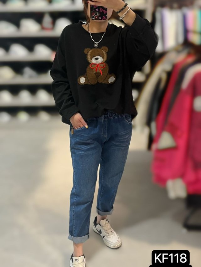 KF118 刺繡熊啤啤Top $129 紫 灰 黑
