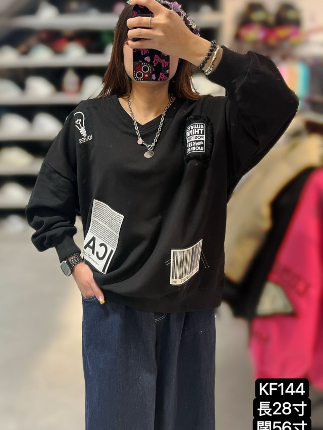 KF109 撞色鴛鴦袖拼文字有帽衛衣 $169 黑 啡 白
