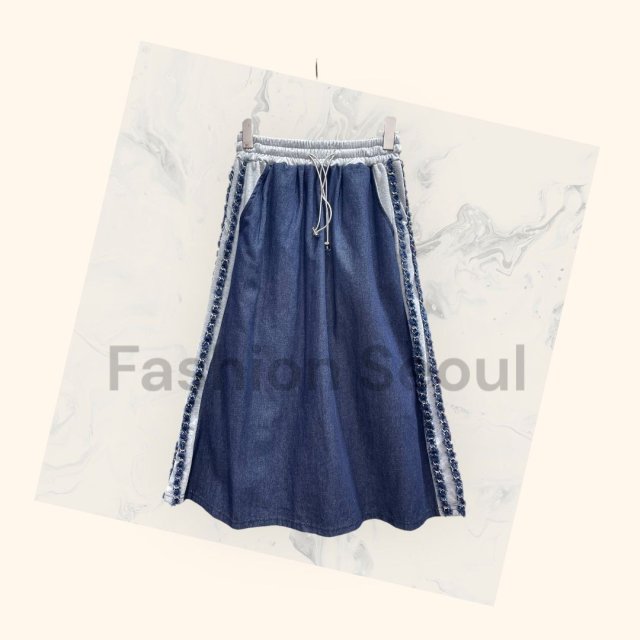KF37 全橡筋腰銀鏈邊牛仔裙 $179 腰26-46寸、Hip52-56寸、長77cm