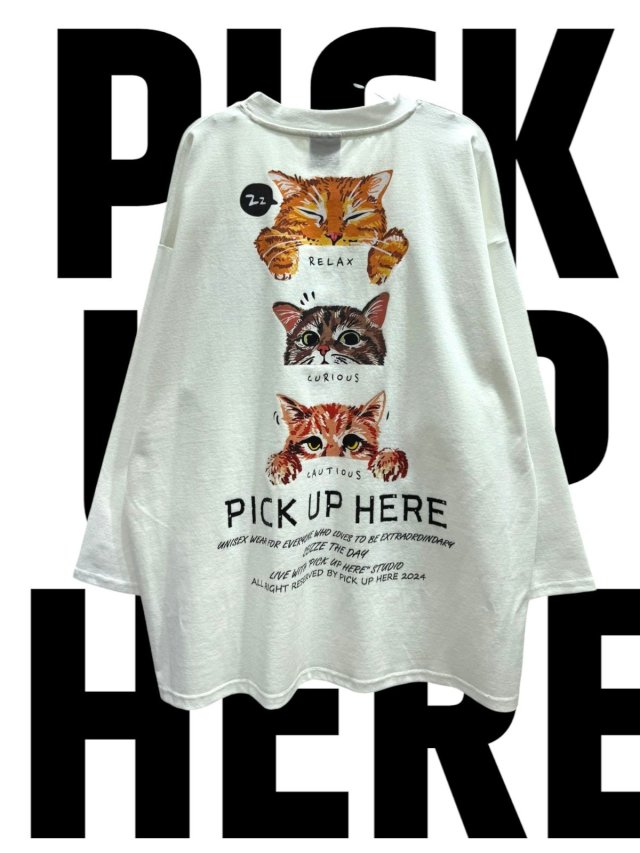 PH01 韓國 🇰🇷 PICK UP HERE背面貓貓TEE ❌原價$399❌ ACE直播價$159 黑、白、紫藍 Size:F、L