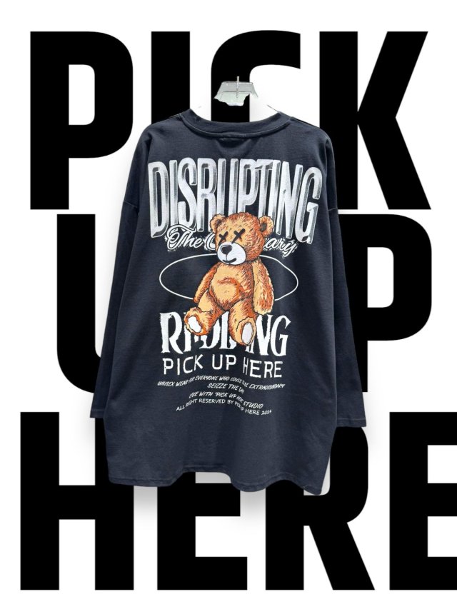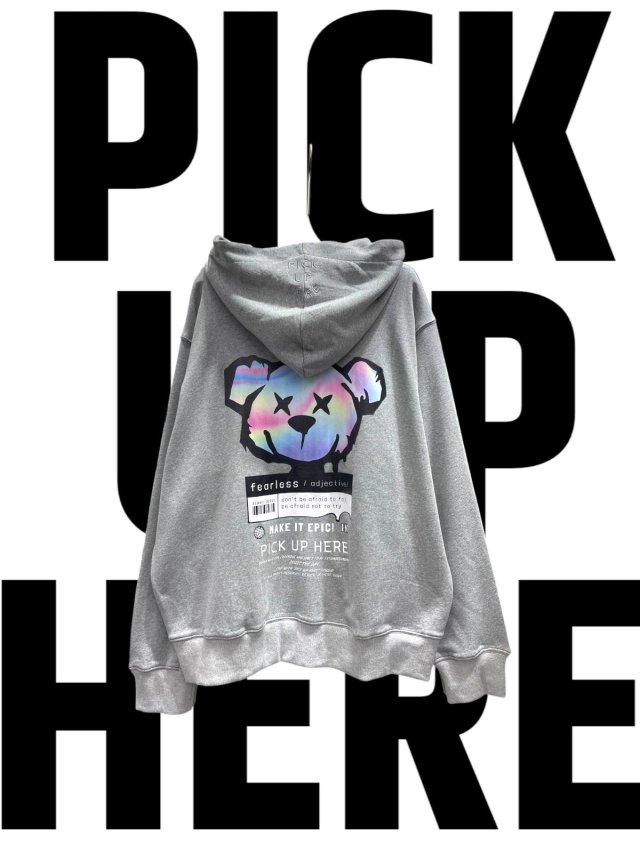PH03 韓國 🇰🇷 PICK UP HERE背面幻彩熊仔JK ❌原價$499❌ ACE直播價$239 黑、灰 Size:F、L
