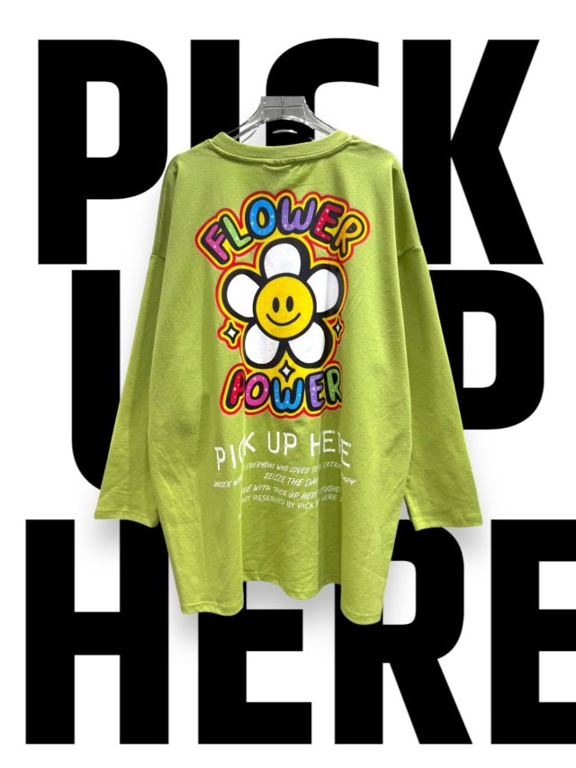 PH05 韓國 🇰🇷 PICK UP HERE背面彩色哈哈笑花TEE ❌原價$399❌ ACE直播價$159 黑、綠、白 Size:F、L