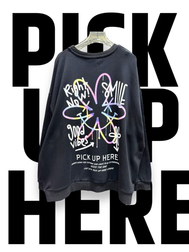 PH10 韓國 🇰🇷 PICK UP HERE背面幻彩花花印字衛衣 ❌原價$449❌ ACE直播價$179 黑、粉、綠 Size:F、L