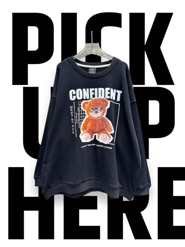 PH06 韓國 🇰🇷 PICK UP HERE背面印字熊仔衛衣 ❌原價$449❌ ACE直播價$179 啡、白、黑 Size:F、L